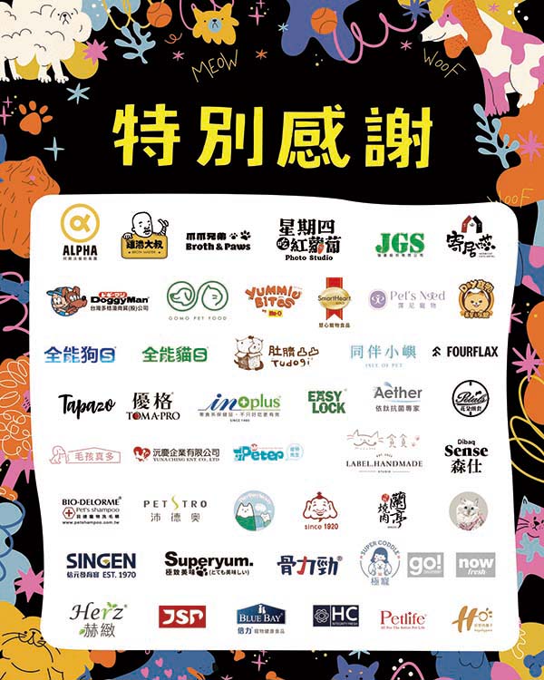 這次活動邀請Only翁哩、陳馬雞、嘉恩、NIGO、小不點、豆豆點點多位寵物KOL是這次的活動大使,還擔任我們走秀的評委,也一同響應「認養不棄養,毛孩揪愛力」的理念,希望飼主在給毛孩添購吃食或衣物時,能夠透過這次活動喚醒流浪犬貓的議題。今年也邀請兩大知名家族「雪橇犬與大貓們」與「柴犬聯盟」一起熱情響應,現場合照陣仗萌翻所有人呢! 這次延續以往的愛心義賣活動、義診與市集,進駐雞湯大叔Broth&Paws等優質廠商增添色彩,還有Petals花朵家、EasyLock、LABEL.HANDMADE、祥晴鮮品、呼嚕呼嚕溫蒂、白藤BAITENG等文創小攤讓大家逛得眼花撩亂。