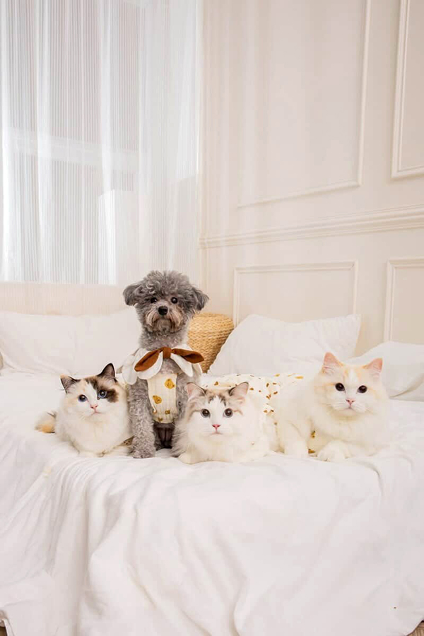 採訪最開始,路易媽就直言說只養過狗狗。然而在某天心情低落時,遇到了販售YoYo的店家。當時媽媽接手抱過一隻乖巧黏人的布偶貓,4小時過去,完全不掙扎的她,輕易的擄獲當時急需慰藉的路易媽,因此順理成章地成為家中的一份子,也是家裡的第二隻毛孩。茉莉的到來也讓YoYo在陌生的環境更安心,同為布偶貓的她們,似乎更能夠理解彼此,比起和原住民的貴賓狗相處,YoYo還是更喜歡茉莉,於是也成為關係不錯的兩位好夥伴。