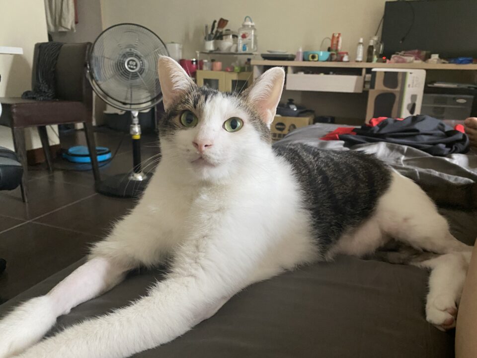 飼主:柏瑞萍 | 貓咪:阿喵 三年前霸王寒流時撈阿喵回家,誰知新手育貓,引發臉部首次過敏,紅腫癢持續兩周,又吃又擦類固醇與抗敏藥才改善。半牛後又再一次臉紅腫發作,搜尋網路原來可能是對貓的毛屑塵蟎過敏!