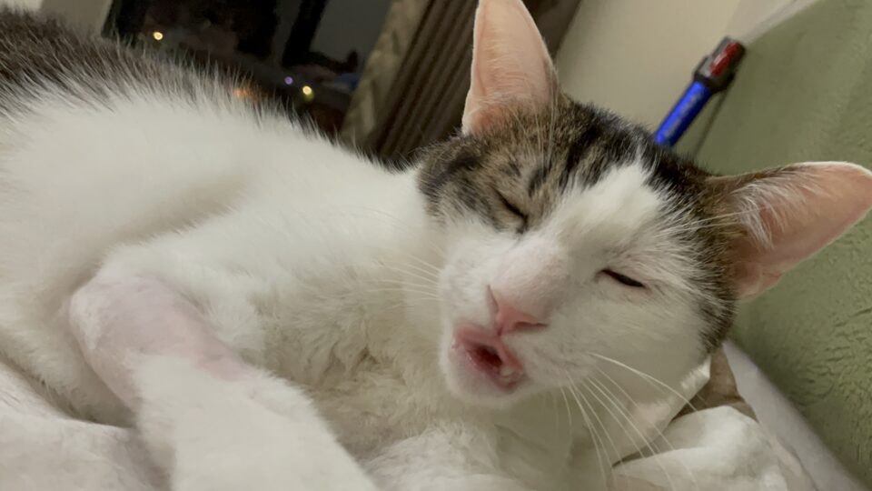 飼主:熊瑋芸 | 貓咪:三郎 跟貓咪玩了一會兒,就會開始打噴嚏甚至流眼淚,再久一點皮膚也會有點發癢